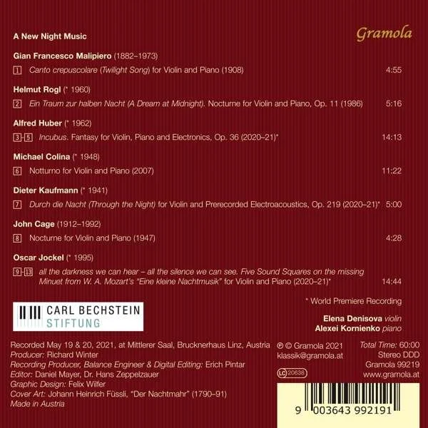 The piece for violin and piano "all the darkness we can hear - all the silence we can see" was released by GRAMOLA recorded by Elena Denisova and Alexei Kornienko.